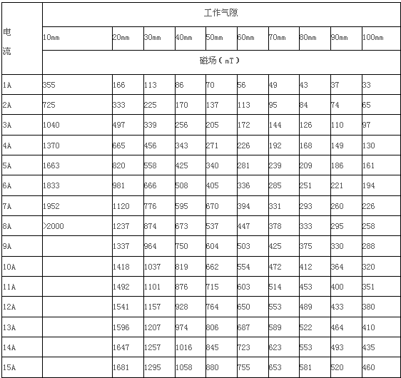 2.3、磁場強度 :H≥0.8T,工作氣隙50mm時